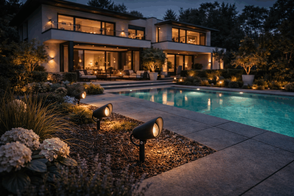 Ob als Beleuchtung für Wege, Pflanzen oder Fassaden – Außenbeleuchtung schafft Struktur und hebt gezielt bestimmte Bereiche hervor. Besonders LED Gartenstrahler sind energieeffizient, langlebig und vielseitig einsetzbar.